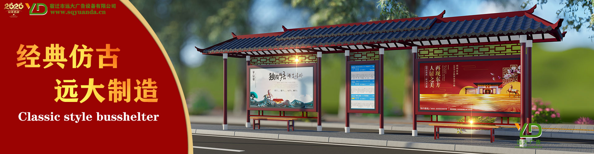 宿遷市遠(yuǎn)大廣告設(shè)備有限公司是一家專業(yè)生產(chǎn)公交候車亭,公交站臺(tái),閱報(bào)欄,指路牌,廣告垃圾箱,滾動(dòng)換 畫燈箱等系列產(chǎn)品廠家!產(chǎn)品多達(dá)上百種,亦可根據(jù)客戶的需求加工制作。